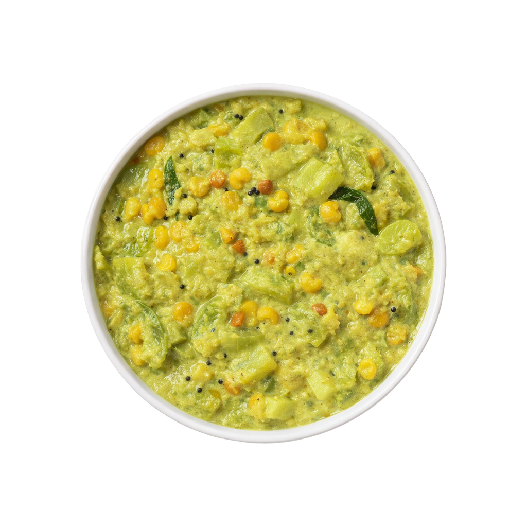 Pudalangai (Snake Gourd), Lentils (Moong Dal or as used), Coconut, Green Chilli, Cumin Seeds, Turmeric, Mustard Seeds, Curry Leaves, Salt, Edible Oil.